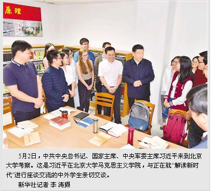 在五四青年节和北京大学建校120周年校庆日即将来临之际,中共中央总书记、国家主席、中央军委主席习近平来到北京大学考察。习近平在讲话中指出,广大青年既是追梦者,也是圆梦人。广大青年应该在奋斗中释放青春激情、追逐青春理想,以青春之我、奋斗之我,为民族复兴铺路架桥,为祖国建设添砖加瓦。(5月3日《人民日报》)
