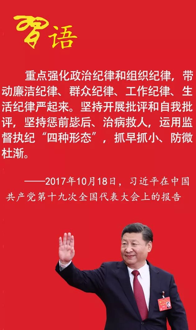 党的十九大报告在阐述新时代党的建设总要求时提出,“全面推进党的政治建设、思想建设、组织建设、作风建设、纪律建设,把制度建设贯穿其中,深入推进反腐败斗争。”纪律建设首次与政治建设、思想建设、组织建设、作风建设并列纳入党的建设中,凸显了纪律建设的重要性。一起来学习习近平总书记关于纪律建设的重要论述吧。