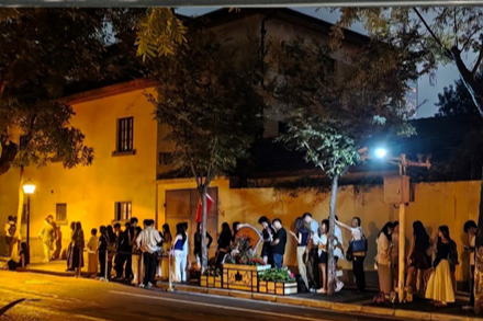 仲夏夜,连云港盐河巷历史文化街区的巨幕前,数千市民仰首屏息,目光聚焦于绿茵场上的一次次突破,左手冰爽的啤酒,右手滋滋作响的海鲜烧烤,呐喊助威声与美食香气在夜空中交织。